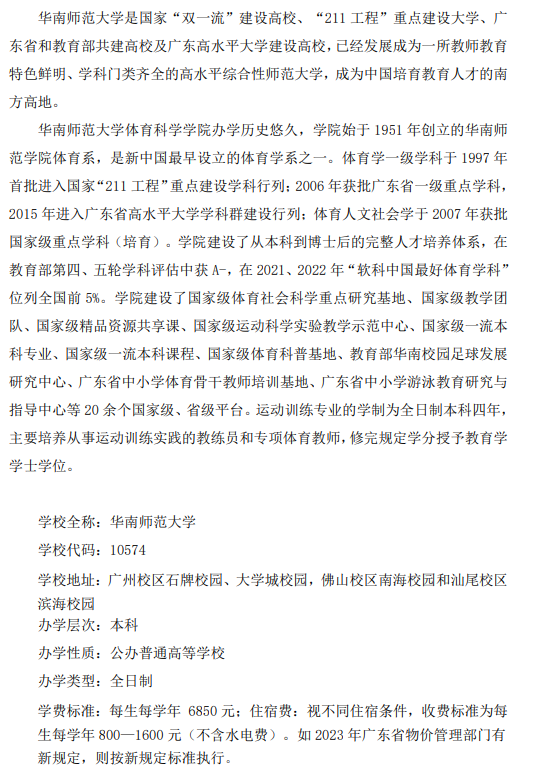 华南师范大学2023年运动训练专业招生简章.pdf 点击查看